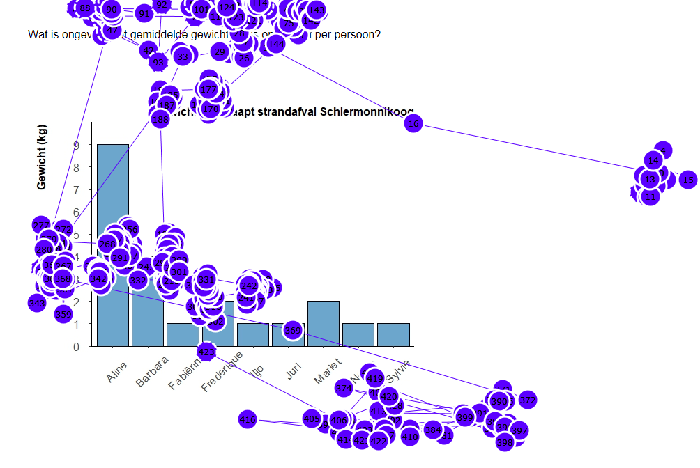 The visualization includes dots and lines representing fixations and saccades, respectively. Fixations are depicted as dots, with each dot indicating a phase when the participant’s gaze remains relatively stable on a specific area of the stimulus. The size of the dot typically corresponds to the duration of the fixation, with larger dots representing longer durations of fixation.